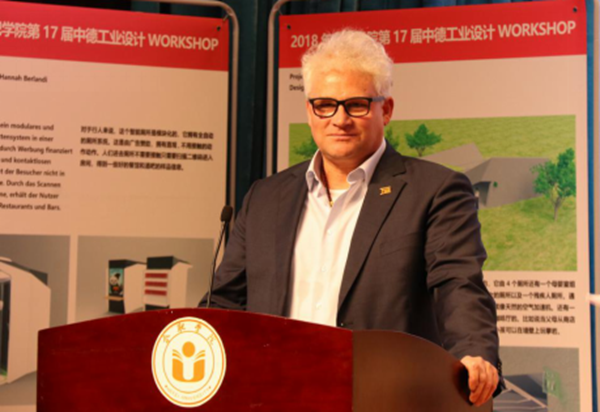 德国马格德堡应用科技大学教授提斯·克鲁格(Thies Krueger)发表讲话,他首先对合肥学院以及相关企业所提供的条件和大力支持表示了衷心的感谢,为期两周的WORKSHOP,经过不断探讨交流得出了很好的成果,这一届设计作品是迄今为止最好的方案,衷心期待大家的指正,通过这次活动将合作继续发展持续下去,同时看到了很多有意思的事物,有幸参加了中德论坛看到合肥学院在中德交流上作出的努力和成果。最后引用了中国一句古话“好酒当与君共分享”,希望建立深厚情谊的双方共同努力,继续做好下一届中德工业设计WORKSHOP。