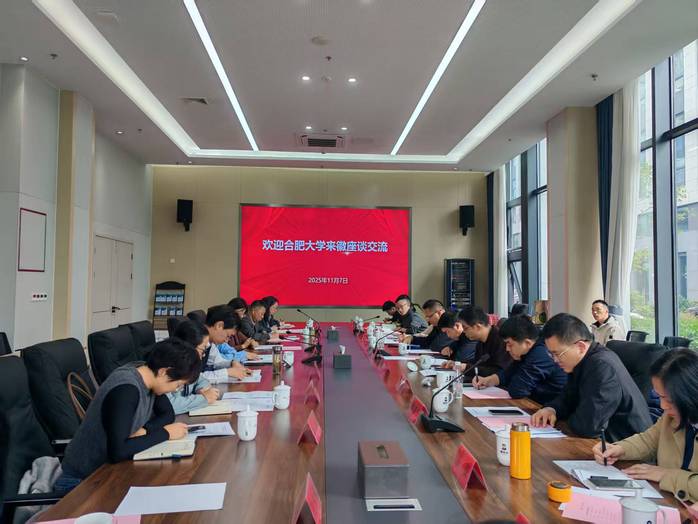 在浙大网新智能制造产业园展厅集中参观后,举行了校地合作座谈交流会。会议由徽州区副区长程丽群主持。与会人员共同观看了徽州区宣传片,双方就合作需求、合作路径及推进机制展开讨论。我校专家结合学科优势与企业实际需求,提出了多项合作建议。