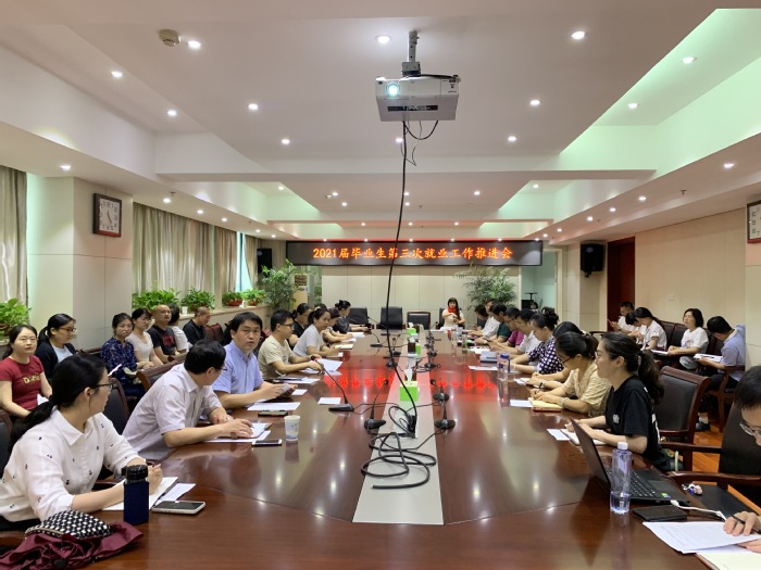 6月3日下午,教育部2021届高校毕业生就业工作第三次调度视频会召开。我校组织各二级学院党委副书记、学工办负责人、就业工作联络员、毕业班辅导员、专业班主任在行政楼九楼西会议室参加了会议。