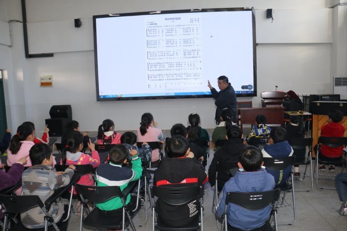 教学之余,曹红星还从全校三到四年级六个班里遴选出四十名同学参加合唱团,每周三、周五下午,利用课外活动时间排练了《唱支山歌给党听》《听我说谢谢你》两首合唱曲目。经过曹红星的互动教学引导,合唱团的很多学生变得表现欲强烈、自信心大增,每次课程结束,学生们都不再怕生,主动围着曹红星交流。“随风潜入夜,润物细无声。”音乐教育就是用这种潜移默化的方式,以它强烈的艺术感染力发挥着独特的育人功能,曹红星老师用爱与专业为同心小学的孩子们种下一颗种子。