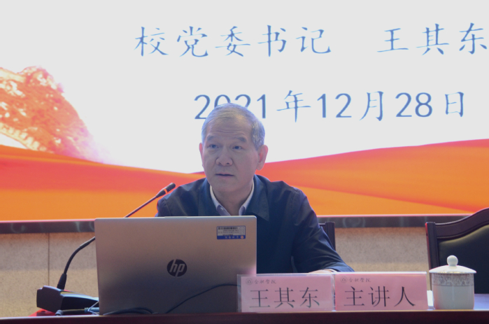 12月28日,我校于图书馆报告厅A厅举办党的十九届六中全会精神专题宣讲会,校党委书记王其东作专题报告,各二级学院党委所属的党支部书记、组织员、全校科级干部参加会议。