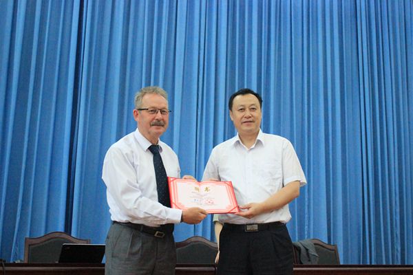 蔡敬民书记为奥托•凯尔斯滕教授颁发客座教授证书