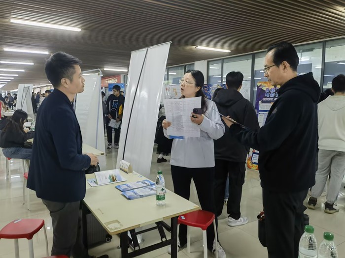 本次招聘会共有中国石油、安徽省皖北煤电集团、中国水利水电第十二工程局等52家单位参会,招聘需求涉及我校多个专业,为毕业生提供就业岗位156个,人才需求1654个。活动现场,毕业生主动对接校友企业,积极与企业人事交流,了解职位信息。