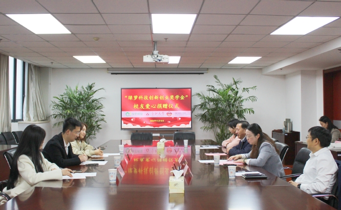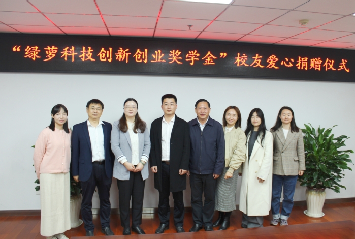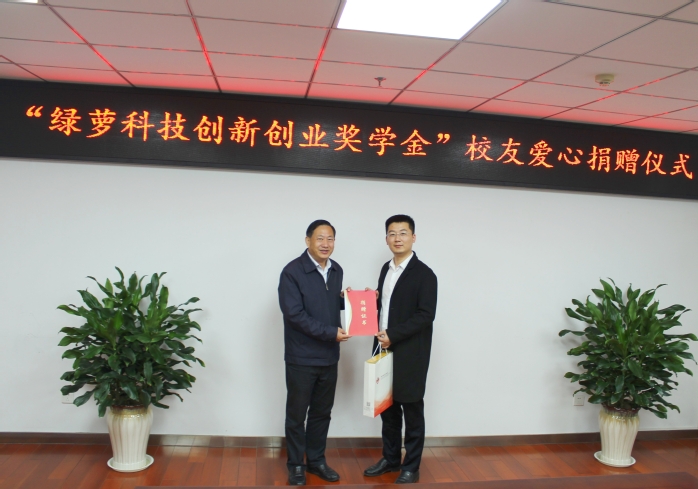 11月15日,我校举行“绿萝科技创新创业奖学金”校友爱心捐赠仪式。安徽绿萝科技有限公司创始人、2009级化工专业校友蒋尚伟,安徽中德教育合作基金会秘书长何世昆,能源材料与化工学院党委副书记魏安乐及学生处相关负责老师参加捐赠仪式。仪式由基金会管理办公室主任刘金平主持。