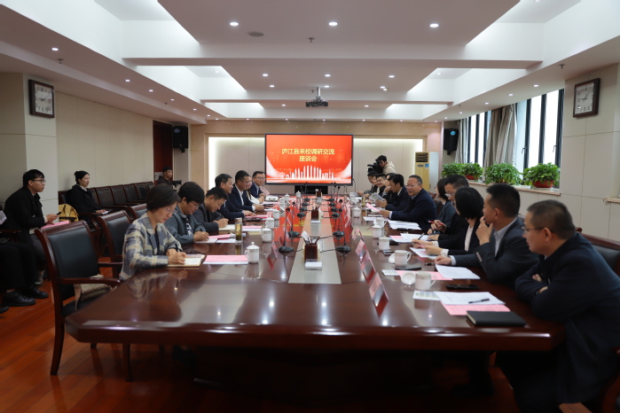 会前,庐江县主要领导、重点企业代表与学校召开产学研合作座谈会。双方围绕加强校地合作、科技成果转化、人才交流等方面进行了深入交流。双方一致认为,要进一步加强校地合作,完善顶层设计,构建产学研合作框架,发挥人才优势、产业优势、平台优势,推动创新链、产业链、资金链、人才链深度精准融合,实现校地双方共同发展。