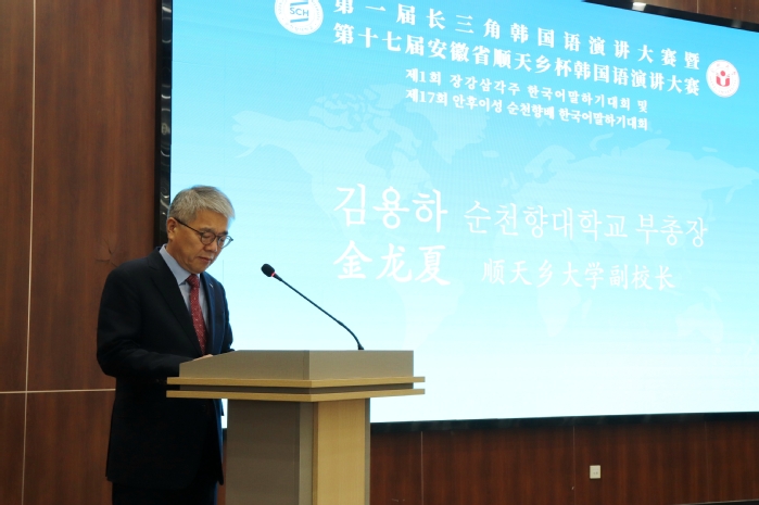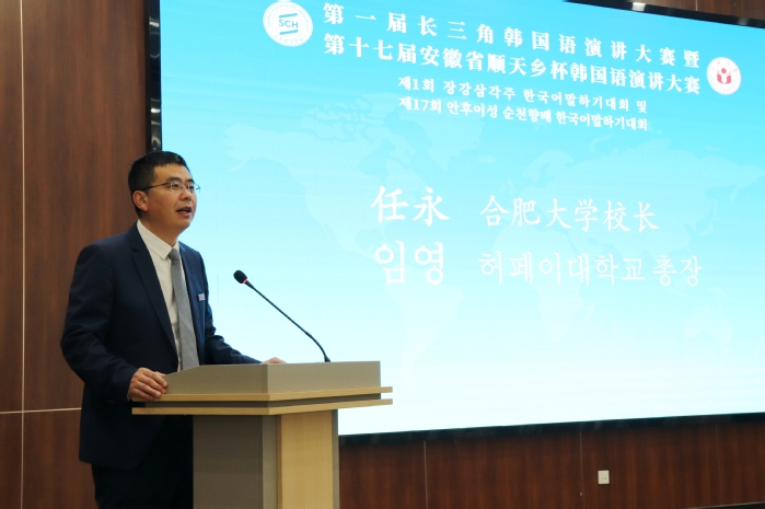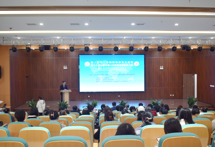 12月5日,第一届长三角韩国语演讲大赛暨第十七届安徽省“顺天乡杯”韩国语演讲大赛决赛在我校55栋学术报告厅举办。党委副书记、校长任永,顺天乡大学副校长金龙夏和省教育厅外事处处长姚德勇出席开幕式,副校长陈秀出席颁奖典礼。