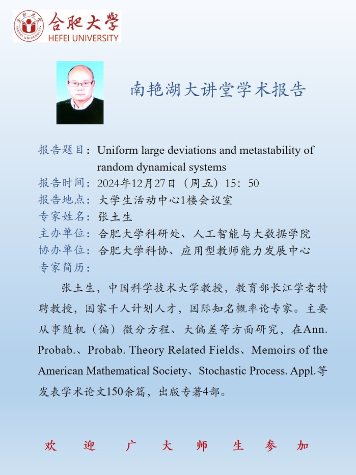 【南艳湖大讲堂】Uniform large deviations and metastability of random dynamical systems