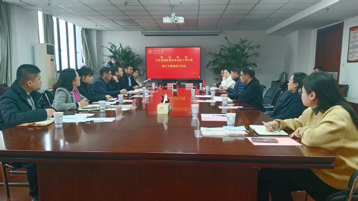1月14日,五河县委常委、组织部部长赵入德带队来我校开展“招才引智”高校行活动,与我校合作共建青年人才工作联络站。党委组织部、团委、设计学院等相关单位负责人参加活动。