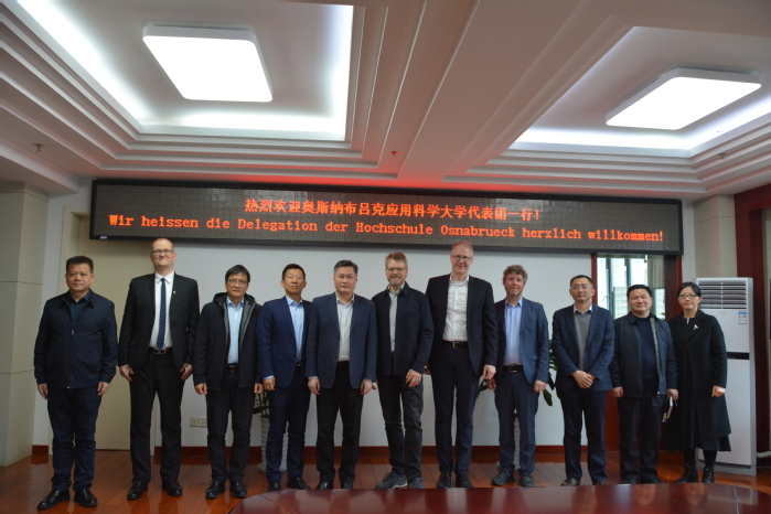3月13日,党委副书记、校长任永在行政楼九楼东会议室会见奥斯纳布吕克应用科学大学亨德里克·拉克勒、诺伯特·巴尔曼、马蒂亚斯·瑞克茨格尔一行,会谈由党委委员、副校长王晓峰主持。