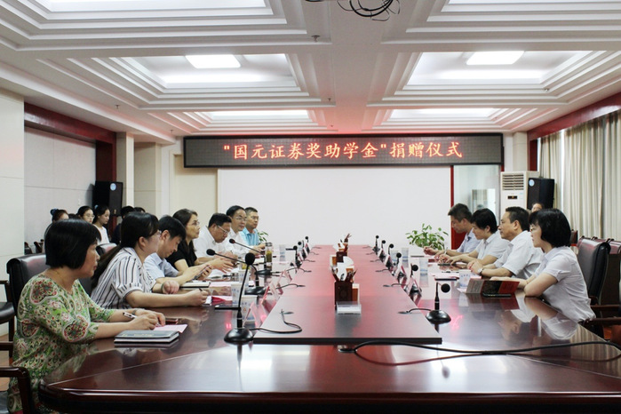 9月16日下午,合肥学院举行2020年度“国元证券奖助学金”捐赠仪式。国元证券股份有限公司党委副书记、监事会主席、工会主席蒋希敏一行四人,合肥学院副校长、安徽中德教育合作基金会(以下简称基金会)理事长陈秀,校计划财务处处长、基金会秘书长何世昆,校党委委员、学生处处长、基金会事业发展部副部长朱涛,校经济与管理学院院长陈江华等相关部门老师,以及获得上一年度奖助学金的学生代表参加了捐赠仪式。仪式由基金会管理办公室主任刘金平主持。