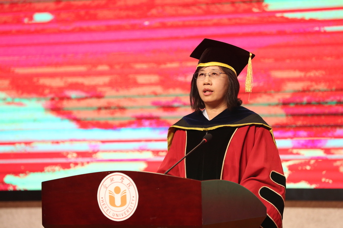 Frau Wu Chunmei dankte zunächst den Provinz- und Stadtführungen für ihre Fürsorge und Unterstützung für die Universität Hefei. Sie betonte, dass das Projekt der Conti-Klasse mit dualem System der Universität Hefei ein konkreter Ausdruck des Festhaltens der Universität an der lokalen, anwendungsorientierten und internationalen Ausrichtung des Universitätsbetriebs sei. Der erfolgreiche Abschluss und die qualitativ hochwertige Beschäftigung von 21 Studierenden der ersten Conti-Klasse sei das erfolgreiche Ergebnis unserer Universität. Sie symbolisierten, dass die Ausbildung der anwendungsorientierten Fachkräfte und die internationale Zusammenarbeit ein neues Niveau erreicht hätten.
