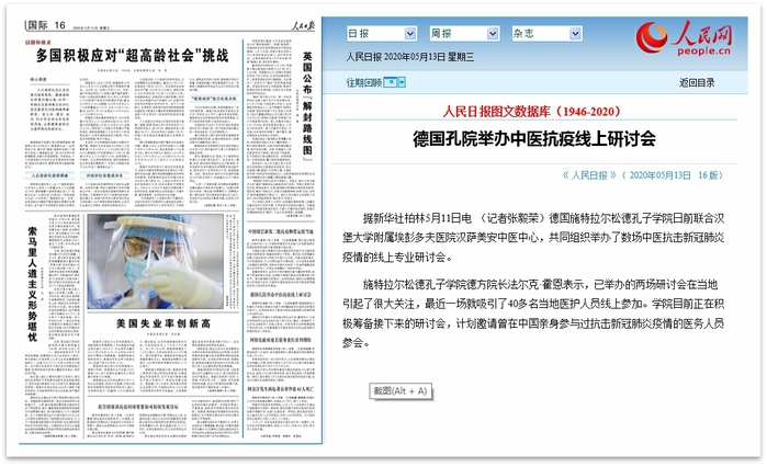 人民日报、新华社等央媒报道我校孔子学院举办中医抗疫线上研讨会