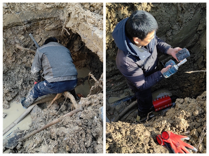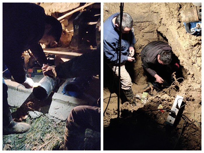 冬季的深夜,阵阵寒风吹过,泥水浸湿了工人师傅的衣衫,但抢修工作没有停止,大家并肩作战,抓紧每分每秒的时间,想尽办法,尽快完成抢修任务。为了确保水管通畅,维修队打开阀门试验无误后才结束了此次抢修工作,保障了我校广大师生用水不受影响。在此次抢修工作中,后勤集团在昏黄的灯光下团结协作,在潮湿的环境中俯身坚守,充分发扬了任劳任怨、不怕吃苦的精神。