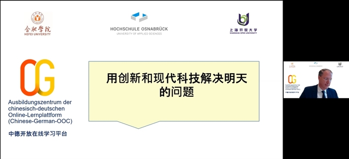 随后,三校领导签署了三校合作协议,分别进行了中德开放在线学习平台长三角基地和德国基地的揭牌仪式。最后,三方启动双元制线上线下培训,合肥学院客座教授、奥斯纳布吕克应用科学大学教授拉克勒为胜利油田“工匠班”作题为“用创新和现代科技解决明天的问题”的专题报告。