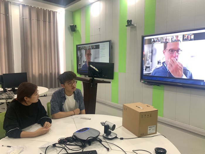 我校中德双元制高等教育“大陆班”自2016年开设,由合肥学院、德国大陆集团和德国埃姆登/里尔应用科学大学共建,通过三方进行国际校企合作,培养适用于社会经济发展的人才,是我校深化应用型高等教育发展改革的新尝试。受新冠疫情影响,自2020年起,大陆班的赴德学习选拔考试已经连续两年以线上形式进行。今年的线上选拔考试于5月中旬举行,考试分为笔试和口试(专业知识汇报)两部分:5月18日下午进行专业笔试,5月20日下午考生们根据德方教授事先给予的专业题目进行分组汇报。此次考试由中德人才交流中心组织,埃姆登/里尔应用科学大学的朗格教授、施密特教授以及大陆集团汉诺威Stoecken实训中心主任考茨先生作为考官共同参与了监考工作。