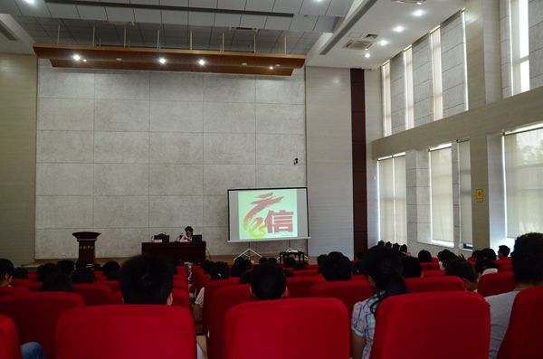 5月20日,省教育厅“诚信校园行”专场宣讲活动在我校图书馆学术报告厅B厅举行。中国人民银行合肥中心支行征信管理处副处长晏红梅、副科长王娟,国家开发银行安徽省分行客户二处经理许玮,安徽省农村信用社联合社卞锐经理,省学生资助管理中心副主任许健康、副主任科员赵慧出席本次活动。我校获得生源地信用助学贷款的各系学生代表、学校学生资助管理部门工作人员、各系负责学生资助工作的辅导员老师参与活动。校学生资助管理中心主任詹磊主持报告会。
