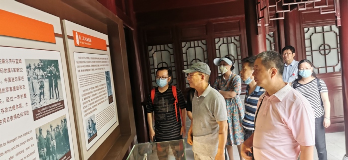 会员们首先参观了位于庐江县的新四军江北指挥部旧址。新四军江北指挥部是1939年5月根据党中央指示,张云逸、叶挺、邓子恢、罗炳辉等在安徽省庐江县东汤池组建的。新四军江北指挥部成立后,整编了江北各部队,积极东进抗日,开展了艰苦卓绝的反“围剿”和反“摩擦”斗争,创建和发展了抗日根据地,为开创华中地区革命的新局面做出了重要贡献。