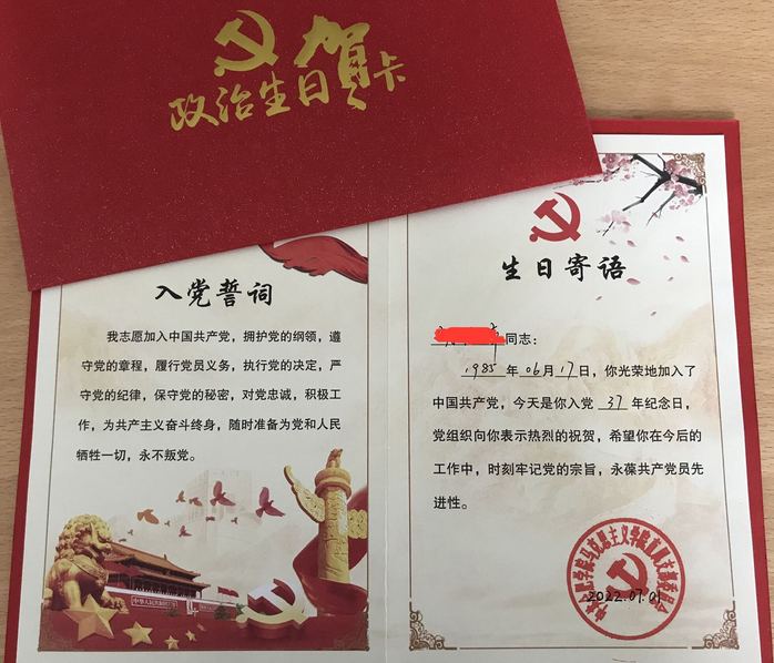 参观后,马克思主义学院直属党支部为每位党员颁发了定制的政治生日贺卡,开展集体过政治生日活动,全体党员在庄严的党旗下,重温入党誓词,充满仪式感的政治生日贺卡和寄语,铮铮入党誓词,让每位党员牢记初心使命,增强了党员的归属感、荣誉感和责任感。