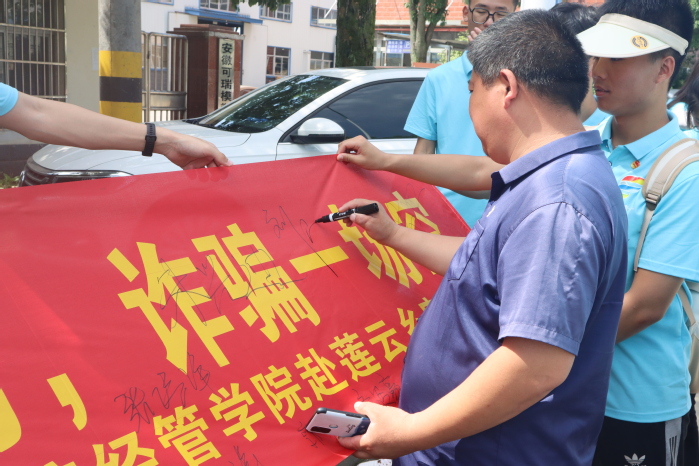 提高农民群众科学素质、大力普及科学知识刻不容缓,实践期间团队深入大街小巷开展主题宣传,围绕反电信诈骗、疫情防控、全民健身、垃圾分类、党史教育等内容进行知识宣讲和问卷调研,并热情邀请居民们参与签名活动。