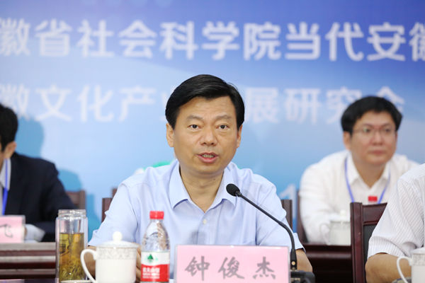 钟俊杰在致辞中指出,“安徽文化论坛”由安徽省社会科学院等单位联合举办的研讨安徽文化改革发展重大问题的年度高端学术论坛。论坛创办于2013年,已成功举办了两届,正逐步成为全省文化学术活动品牌和社科成果交流平台。从合肥的区位经济优势、科教文化资源等方面介绍了合肥文化建设的基本情况与思考。他指出,要用文化创新滋养城市发展,继承和弘扬合肥优秀传统文化,进一步推动文化创新,为经济社会发展凝神聚力,并希望与会专家学者多关注多研究合肥,为合肥发展多提宝贵意见,推动合肥经济、文化发展迈向新台阶。