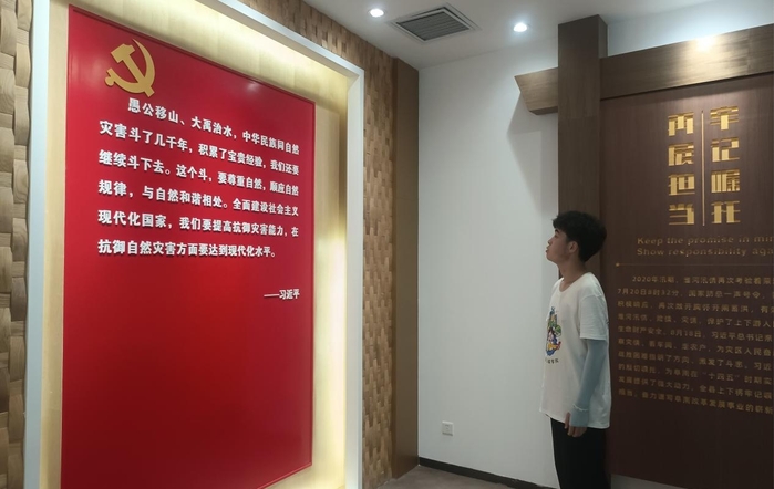随后调研成员参观了王家坝抗洪纪念馆,馆内共设置千里淮河·沧桑蒙洼、顾全大局·舍家为国、自强不息·百折不挠、同舟共济·风雨战歌、科学治水·丰碑长存、牢记嘱托·再展担当、魅力阜南·滨淮花园7个展厅,记录了不同时期蒙洼人民与洪涝灾害英勇抗争的艰辛历程,展现了党对蒙洼群众的关心关怀,生动诠释了王家坝精神的时代价值、科学内涵。调研人员体会到了爱国主义始终是把中华民族团结在一起的精神力量,激励着一代又一代中华儿女为祖国发展繁荣而不懈奋斗。