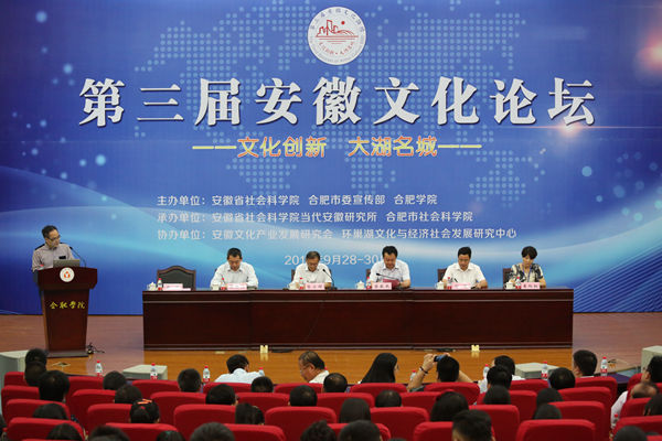 9月29日下午,第三届安徽文化论坛闭幕式在合肥学院图书馆报告厅A厅顺利召开。安徽省社科院院长、党组书记朱士群,合肥学院党委书记蔡敬民,合肥学院党委副书记、校长张文兵,省社科院科研处处长陈瑞,安徽农业大学人文学院党委书记孙超,合肥学院中国语言文学系主任詹向红出席会议。300余名专家学者及学生代表参会。闭幕式由蔡敬民主持。