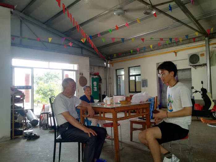 图为周家喆同学在采访小岗村大包干带头人严金昌