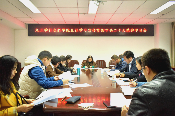 11月18日下午,九三学社合肥学院支社在学校召开会议,集中学习宣传贯彻中共二十大精神。合肥学院党委委员、党委宣传统战部部长贾峰,市政协常委、九三学社合肥市委常委张体云,九三学社合肥市委会组织部部长阚春秀,九三学社合肥学院支社社员及九三学社蜀山区基层委社员代表参加会议。