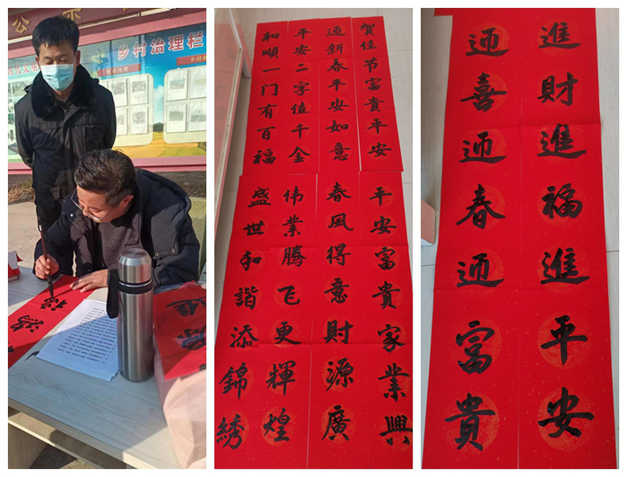 “这次的写春联活动是村委实实在在的为村民办好事,手写的春联就是比印刷的有年味!而且是我们第一书记写的对联,比买的更有意义,贴在自家门上,见字如见人,给人一种选派干部走进我们心中的感觉,心里暖洋洋的,希望能够多多开展这样的活动。”村民王大妈说。