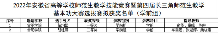近日,省教育厅公布了2022年安徽省高等学校师范生教学技能竞赛获奖名单,我校教育学院推选的7名学生表现出色,获得一等奖1项、二等奖1项、三等奖5项。