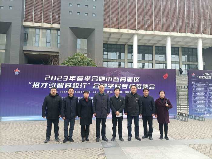 为切实做好2023届毕业生就业工作,服务合肥地区企业发展人才需求,2月21日下午,合肥市暨高新区“招才引智高校行”合肥学院专场招聘会在学校图书馆一楼招聘大厅举办。市人社局副局长方强、市公共就业人才服务管理中心主任曹静、高新区组织人事局副局长姚迪、高新区人力资源开发管理中心主任张力到招聘会现场考察指导,我校党委委员、学生处处长朱涛陪同。