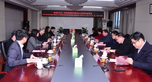 Auf dem Symposium drückte Frau Wu Chunmei ihre aufrichtige Dankbarkeit für seine Fürsorge und Unterstützung für die Entwicklung der Universität aus. Wu Chunmei sagte, dass die Internationalisierung eine der Ausrichtungen der Universität sei und die Universität zudem großen Wert auf die Zusammenarbeit mit Deutschland lege. Sie hoffte, dass Professor Höhn eng mit dem chinesisch-deutschen Industriedesign-Workshop, der beruflichen Entwicklung der Designfalkutät und dem Aufbau des Masterstudiengangs sowie dem Aufbau und der Entwicklung des Konfuzius-Instituts zusammenarbeite, um die Universität zu unterstützen, den Umfang und die Tiefe der Zusammenarbeit mit Deutschland zu erweitern.