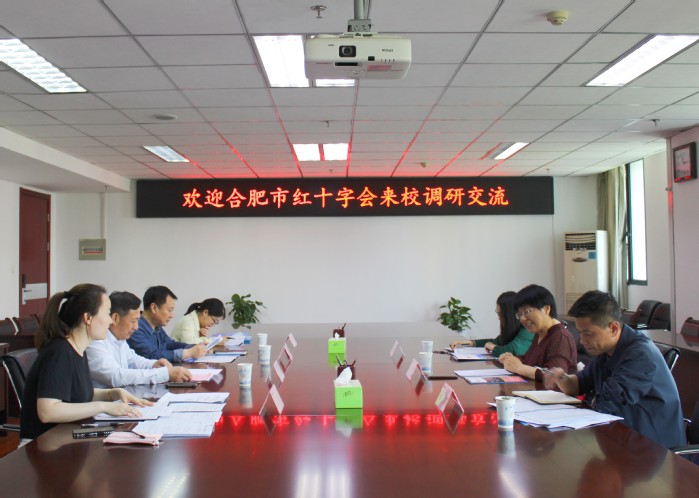4月19日下午,安徽省红十字会兼职副会长、合肥市红十字会专职副会长刘波一行来校调研。安徽中德教育合作基金会秘书长何世昆,校国有资产管理处(采购管理中心)、后勤集团等相关部门同志参加交流座谈。
