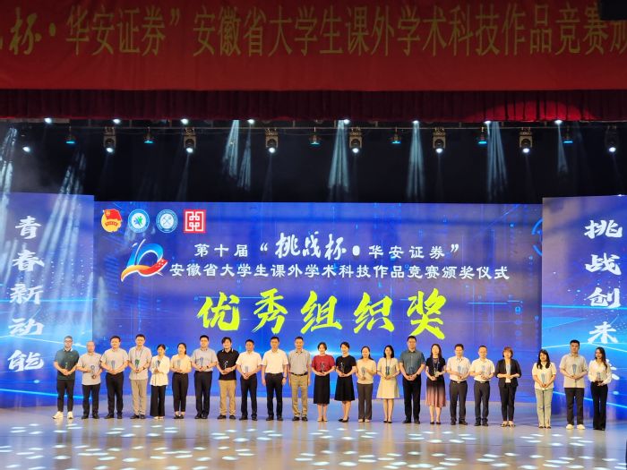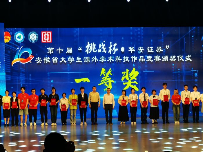 6月11日,第十届“挑战杯·华安证券”安徽省大学生课外学生科技作品竞赛终审决赛在安徽理工大学落下帷幕。我校14项参赛作品获奖,其中一等奖1项、二等奖4项、三等奖9项,我校获优秀组织奖,一等奖作品入围国赛。