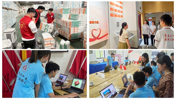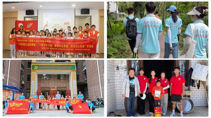校青年志愿者联合会邀请留学生一起走进合肥市经开区临湖社区,围绕思想引领、科技创新、手工实践及文化交流开展为期两周的志愿服务;外国语学院实践团队赴宿州市泗县惠庙村开展助残筑梦爱心慰问活动,为贫困家庭送去大米、食用油、医用口罩、文具等物资,传递爱心与温暖;教育学院团队赴合肥市包河区滨湖和园社区进行安全主题教育,向孩子们介绍防溺水、禁毒和反诈骗等方面的知识;生物食品与环境学院团队赴池州市石台县大演乡,以现场教学和走访宣讲的形式,向当地学生宣传弘扬“井冈山精神”;大学生红十字会赴合肥市长丰县杜集镇东黄村普及结核病防治知识,帮助孩子们认识结核病的危害性,增强自我保护意识。