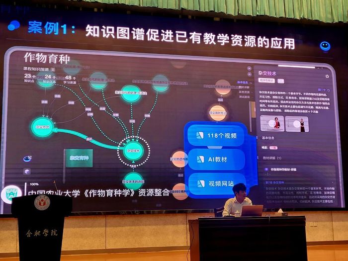 谢红结合知识图谱建构经验和取得的成效,交流了知识图谱建设的理论基础、六维模型和基本步骤,以及基于知识图谱建设成果的典型教学应用场景。谢红指出,建立科学合理的知识图谱体系,能更好支持学生的实践能力和创新能力培养。智慧树网高级工程师汤飞围绕知识图谱建设的时代背景、知识图谱内容如何建设、知识图谱如何助力专业(群)建设、知识图谱的典型案例等方面进行了详细的阐释。