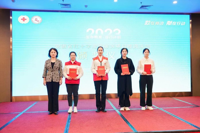 10月13日至15日,由安徽省红十字会、省文明办、省教育厅、省民政办主办的2023年“生命教育·益行计划”红十字志愿服务项目推选活动决赛路演在合肥圆满落幕,我校大学生红十字会参选项目“凝人道力量,为生命护航——让爱益直前行”荣获二等奖。