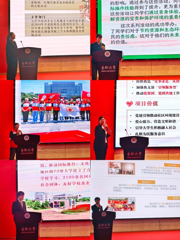 比赛现场,各项目负责人围绕项目开展情况、取得成效等方面进行路演答辩。从阳光助残到为老人服务,从公益奉献到爱心支教,从青年助农到理论宣讲,大家详细阐述了项目的执行情况、社会影响及收获,生动展现了志愿者们脚踏实地、服务社会的精神风貌和团队的优秀成果。
