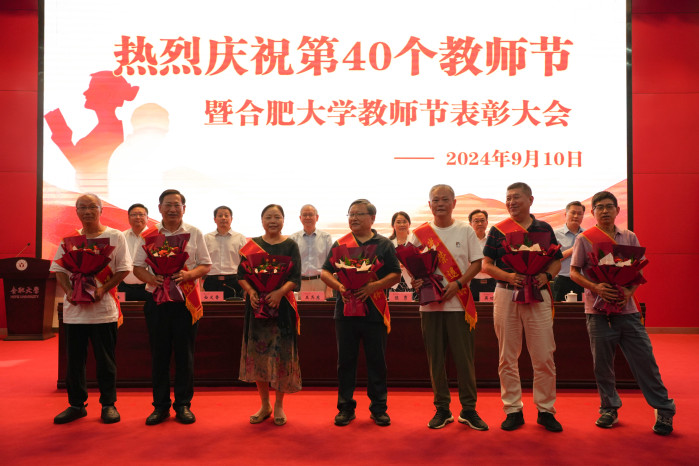 校领导、党委委员分别为安徽省教育工作先进集体、安徽省优秀教师、安徽省优秀教育工作者、2023年度江淮英才培养计划杰出项目创新人才、第四届全国教师教学创新大赛安徽赛区获奖教师、全省高校思政课现场教学展示获奖教师、2023年度省级教学名师、2023年度省级教坛新秀等获奖教师颁奖。