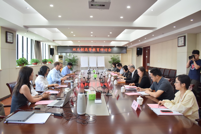 Am Nachmittag des 28. Mai fand an der Universität Hefei das Symposium für duale Hochschulbildung (Contiklasse-Projekt) statt. Professor Lange und Professor Schmidt, die Verantwortlichen des dualen Projekts der Hochschule Emden/Leer, sowie die Verantwortlichen des dualen Bildungsprojekts und der Personalabteilung der Continental AG nahmen am Symposium teil. Auch Wang Qidong, Parteisekretär der Universität Hefei, sowie Verantwortliche der relevanten Abteilungen und Fakultäten der dualen Contiklasse der Universität Hefei waren anwesend.