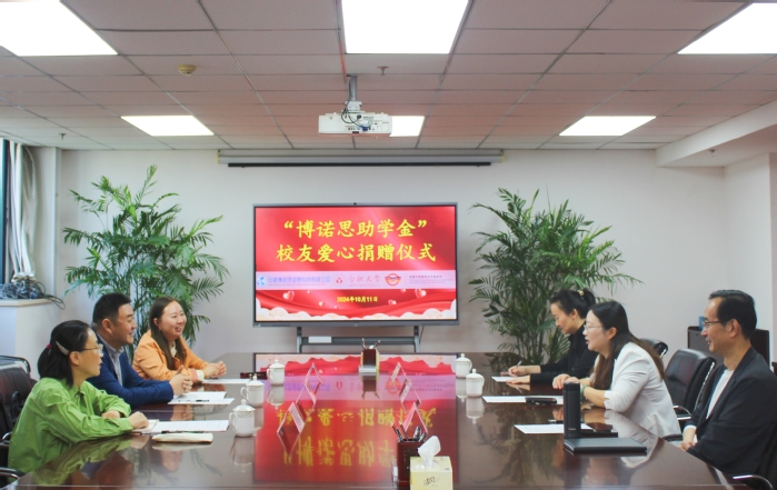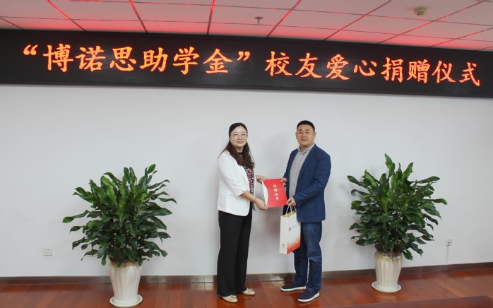 10月11日,我校举行“博诺思助学金”校友爱心捐赠仪式。安徽博诺思信息科技有限公司执行董事、2004届电子信息工程专业校友徐超峰,安徽中德教育合作基金会管理办公室主任刘金平,先进制造工程学院党委书记杜娟及相关教师参加捐赠仪式。仪式由杜娟主持。
