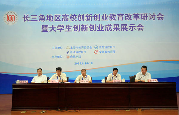 8月18日,长三角地区高校创新创业教育改革研讨会暨大学生创新创业成果展示会在合肥学院顺利落幕。本次会议集中展示了长三角地区高校大学生的创新创业成果,紧紧围绕深化创新创业教育改革,推动“大众创业,万众创新”服务驱动战略的主体深入进行了研讨和交流。来自全国30多个省份高教处的领导、50余所高校代表参加此次研讨会。会上,30多位专家领导作了专题报告和发言,从不同角度和背景谈了经济新常态下创新创业教育改革的看法和意见。