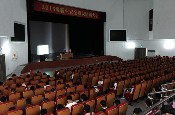 今年6月,我校外语系2013级日语专业马朝霞、朱磊等同学在校内对落水者实施心肺复苏急救的事迹感动了广大师生,也再一次将紧急救护知识普及的重要性拉入了我们的视野。今年,我校新生入学教育中由学生处、公管处特别邀请合肥市红十字会、市疾控中心专家就普及基本救护知识,提高2015级新生面对突发事件的现场应急救护能力,加强青少年自救、互救、急救的能力为新生开展急救知识培训及传染病防治的讲座。为保证培训效果,提高新生参与机会,讲座共分分四场进行。