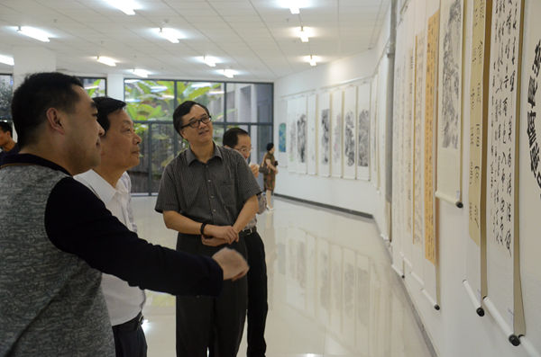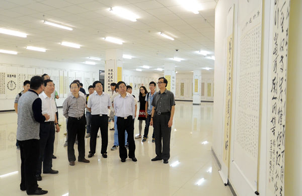 董昭礼正式宣布此次“合肥之友书画院,合肥学院书画联展”开幕。随后在我校老师和同学的陪同下,各位领导饶有兴趣地欣赏了此次活动的参展作品,并参观我校翰墨轩书画协会活动室,对参展作品的作者予以表扬。