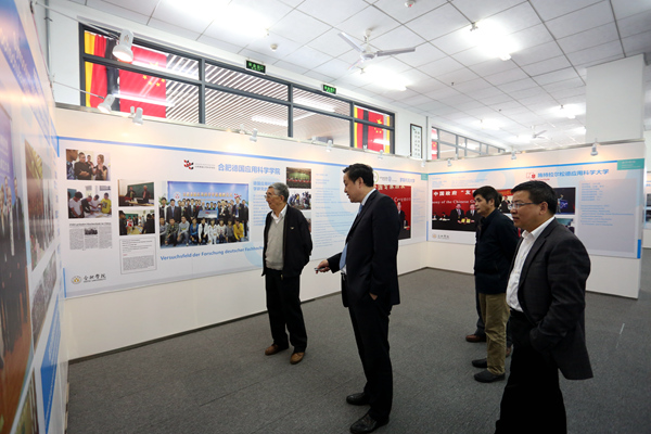 双方就改革中所遇到的问题展开探讨,朱高峰表示教育改革在不同时期会遇到不同问题,要注重实践与理论的结合。当代高等教育的人数不断增加,而社会容量却是有限的,要勇于打破传统循环,寻找新出路,注重培养学生的职业素养,激发学生学习动力,加强学生的知识体系建设。会后,蔡敬民陪同各位来宾共同参观了中德合作共建合肥学院成果展。
