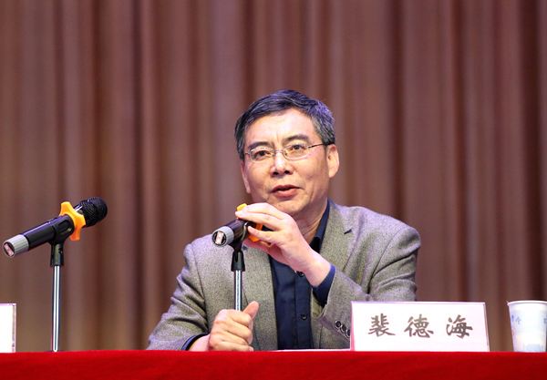 省委讲师团专家、安徽大学哲学系博士生导师裴德海教授作专题辅导报告。报告的主题是《全面从严治党,落实“两学一做”》。他从“两学一做”是全面从严治党的系统工程,学习党章党规是落实“四有”的需要,学习习近平系列讲话是增强四个意识的需要三个方面给到会师生作了一堂生动的辅导报告。他号召在座所有党员及党员代表学习习近平总书记系列讲话,并结合时事,对习近平系列讲话做出“五个一”的精彩概括,一条道路即中国特色社会主义道路,一个目标即奋力实现中华民族复兴中国梦,一个动力即全面深化改革,一个关键即全面从严治党,一个平台即把握好宣传舆论阵地与思想组织形态。告主题鲜明、内容丰富,既有客观、理性分析,又有具体生动的阐述说明,深入浅出,剖析到位,让大家深受教育和启发。