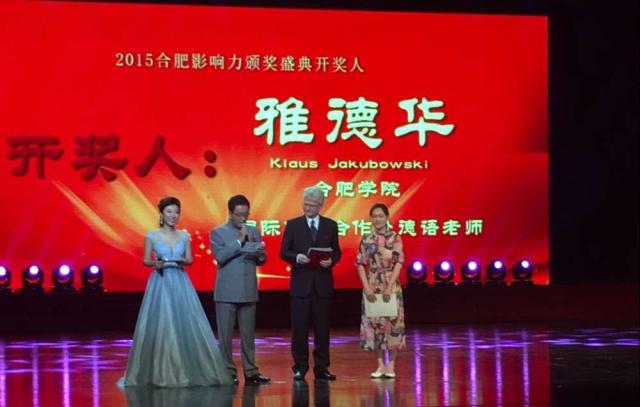 随后,雅德华( Klaus Jakubowski)和丁兴同学分别用德语、中文宣读了活动组委会的致敬词:“一个个画面,记录下一幕幕历史瞬间,一段段故事,谱写出大国外交的华彩篇章。2015年10月30日,李克强总理与德国总理默克尔来到合肥。总理家乡合肥,正以宏远眼光和开放包容的姿态,向世界展示着中国城乡改革发展的奇迹!向779万合肥人民多年来的奋斗致敬。”