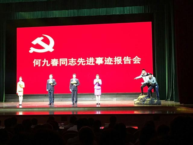 当天,两学一做先进典型、当代大学生的优秀代表何九春先进事迹报告会举行,何九春的中学老师、大学同学、辅导员先后讲述了何九春成长、服役、大学期间的感人故事,缅怀这位以生命诠释爱与责任的青年学子。