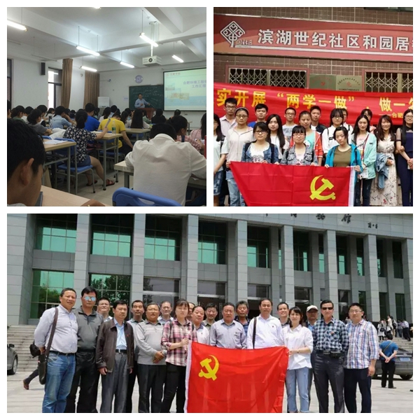 化工系党总支组织学生党员到滨湖世纪和园社区,携手社区居委会,开展党员进社区活动。电子系党总支组织毕业生党员开展了“捐赠一本书,感恩母校情”活动。建工系会同安徽俊业达建设工程项目管理公司,召开“菁莹助学金”表彰会,获得“菁莹助学金”的学生中,党员占了60%。生物系研究生党支部组织研究生党员参加合肥市《城市供水条例》的立法评估工作,受到市人大领导的高度评价,合肥电视台进行了专题采访和报道。基础教学与实验中心组织党员开展“两学一做——看齐意识”专题研讨。计科系党总支开展了“五查五看”畅谈体会专项学习活动。机械系党总支在全体教工党员中开展了“交一次特殊党费,上一堂爱心党课”救助活动,为身患白血病的学生张真捐款。