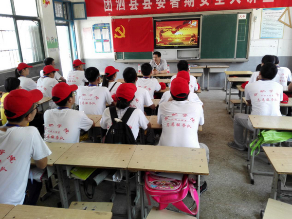 为贯彻落实中央提出的学党章党规,学系列讲话,发挥大学生的先锋模范作用,7月23日,合肥学院党委委员、副院长刘建中在宿州市泗县陡张村陡张小学为机械工程系赴陡张村“三下乡”社会实践团队的志愿者上了一堂主题为“‘两学一做’专题党课之践行‘四讲四有’”的党课。